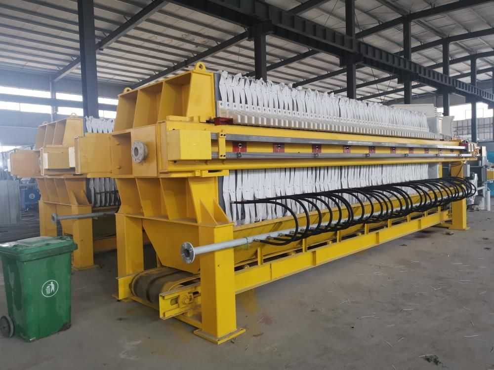 隔膜壓榨壓濾機(jī)是由隔膜板和廂式濾板排列組成濾室,在輸料泵的壓力作用下將料漿輸入濾室,通過過濾介質(zhì)(濾布)將料漿中的固體和液體分離,當(dāng)料漿中的固體形成餅后,再向隔膜通入空氣,對濾室內(nèi)的固體充分壓榨。